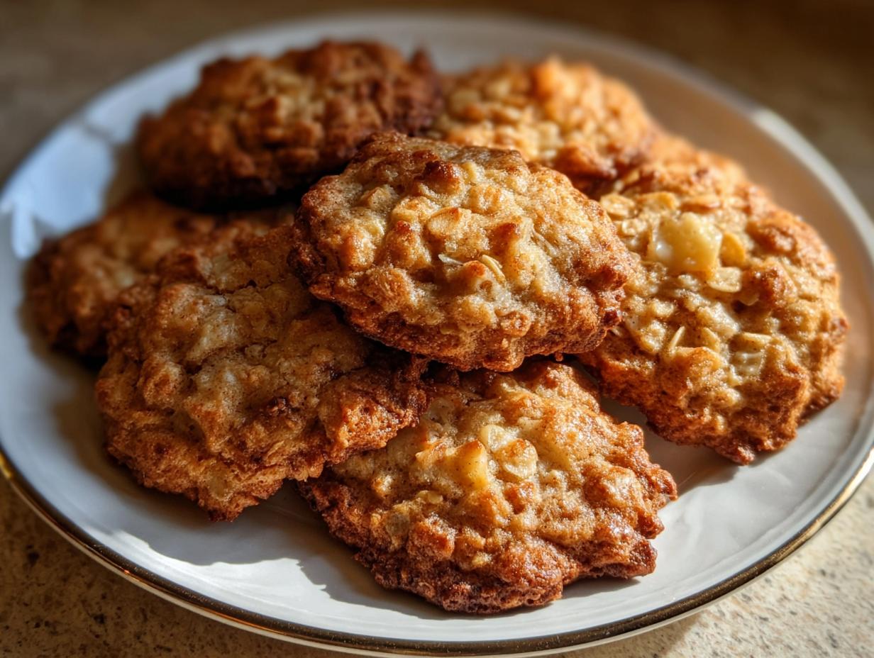 Delicious oatmeal cookies with chunks of fresh apple and a hint of cinnamon for a warm, flavorful treat.