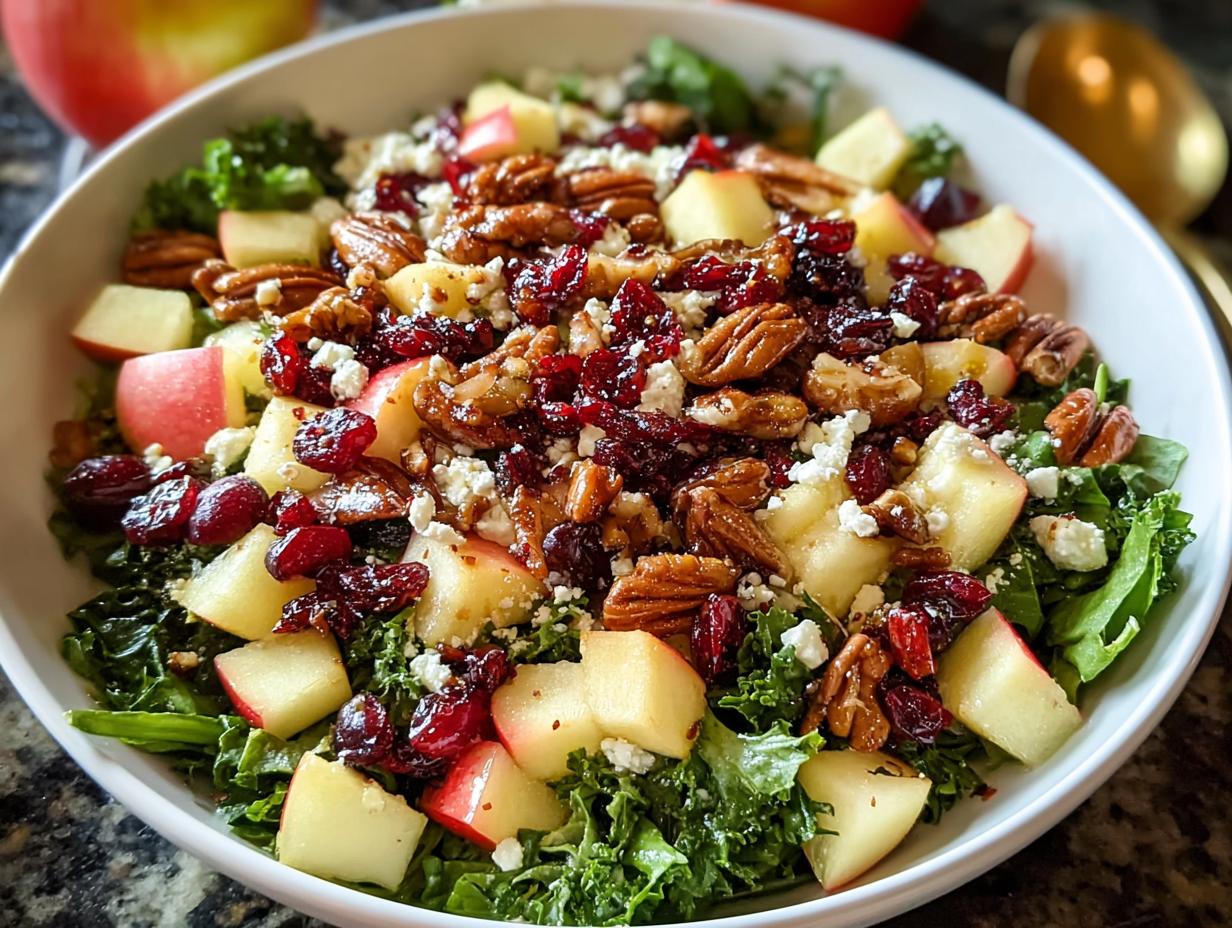 A fresh and tasty salad featuring apples, cranberries, and pecans.