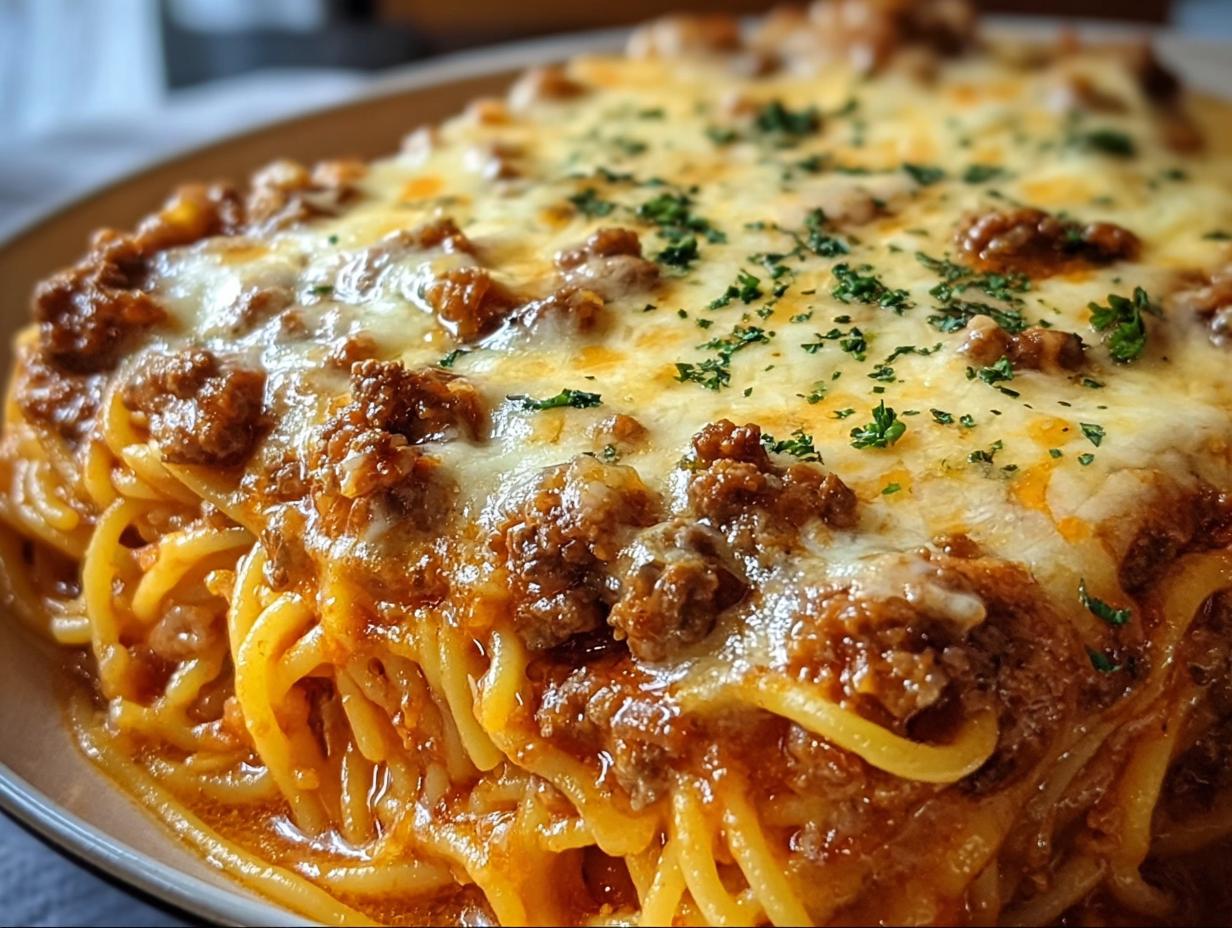 Now it’s time to bring all this deliciousness together! In a large mixing bowl, combine the cooked spaghetti with the creamy meat sauce mixture. Give it a good stir to ensure every noodle is coated in that heavenly sauce. Transfer the entire mixture into a greased baking dish. Now, sprinkle the top with 2 cups of shredded mozzarella cheese and 1/2 cup of grated Parmesan cheese. Yum! Preheat your oven to 350°F (175°C), and once it’s ready, pop the casserole in for about 25-30 minutes. You’re looking for that glorious bubbly, golden cheese on top. When it’s done, let it cool for a few minutes before serving. Trust me, it’s worth the wait! You’ll love it!