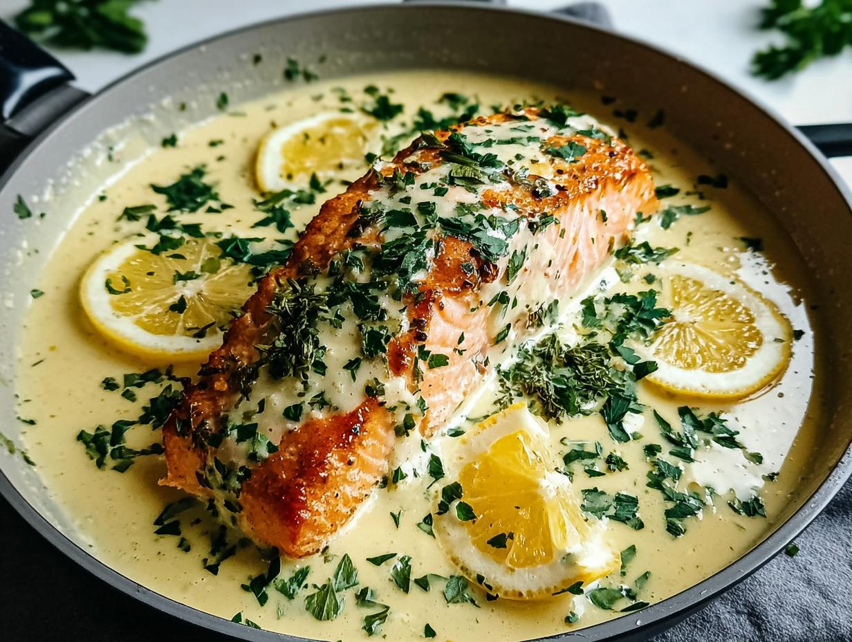 Keywords: Baked Salmon, Lemon Butter Cream Sauce, Salmon Recipe