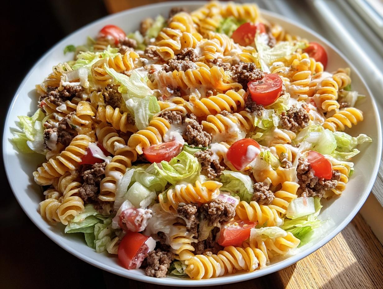 Whether you’re hosting a barbecue or just need a quick meal for the week, Big Mac Pasta Salad is your go-to. It’s filling, flavorful, and brings a fun, nostalgic touch that everyone can enjoy. So grab your apron, and let’s dive into this delightful dish!