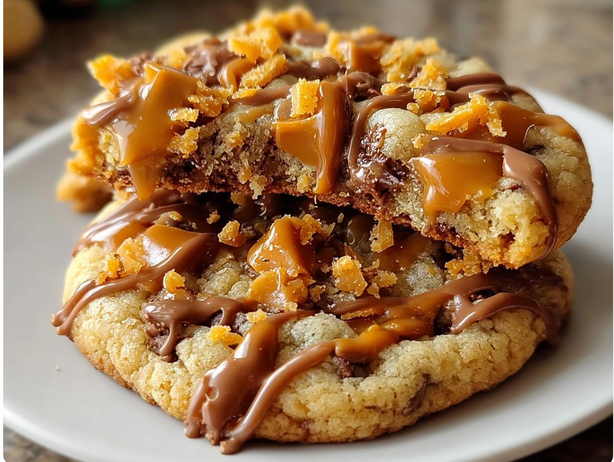 Delicious Butterfinger Caramel Crunch Cookies with a rich flavor.