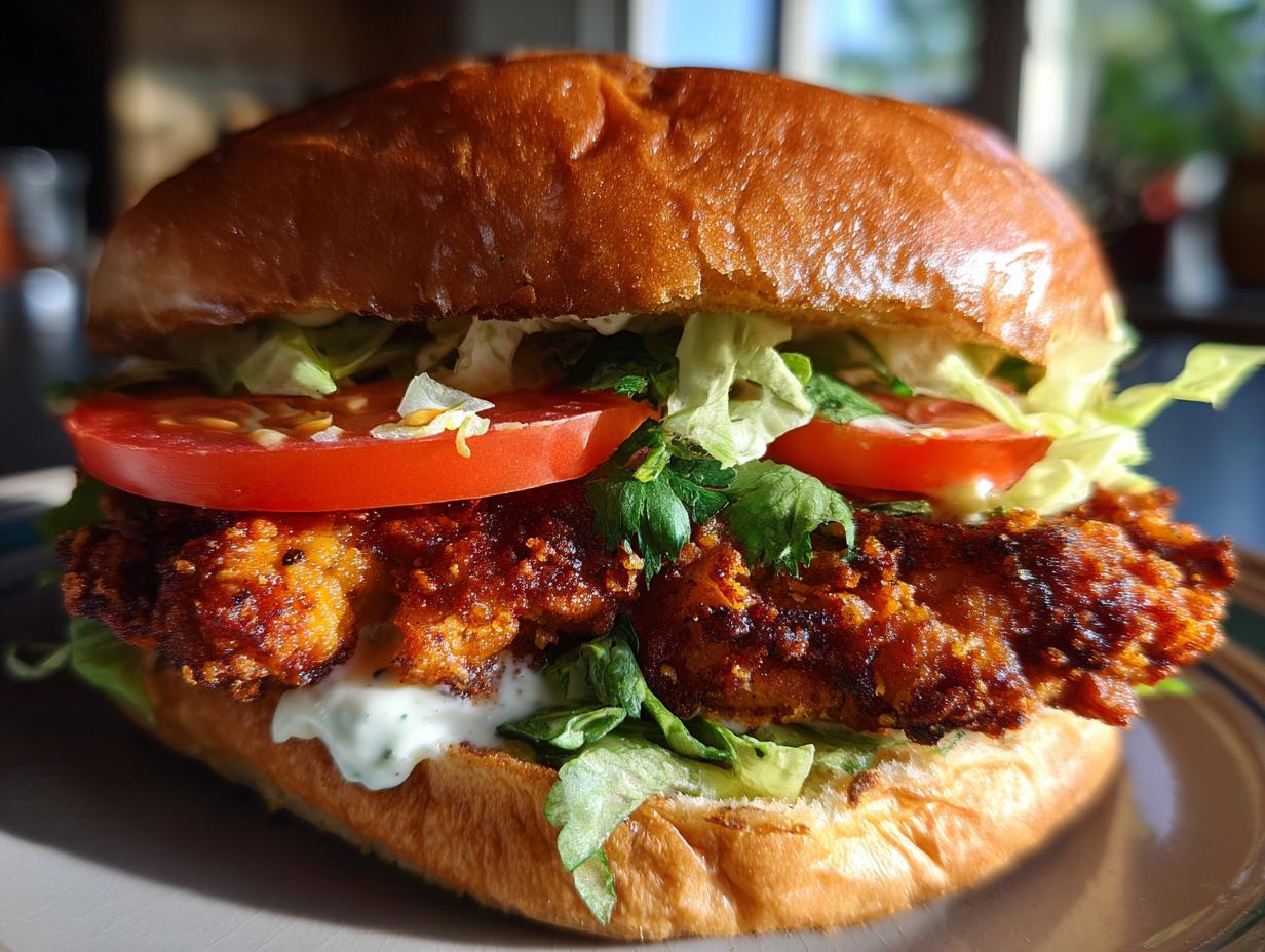 The Cajun Crispy Chicken Sandwich is a delightful combination of juicy, marinated chicken, fried to golden perfection, and topped with a zesty garlic aioli, fresh lettuce, and ripe tomato, all nestled within a soft brioche bun. This sandwich is perfect for a quick meal or a casual gathering, bringing a taste of New Orleans right to your kitchen.