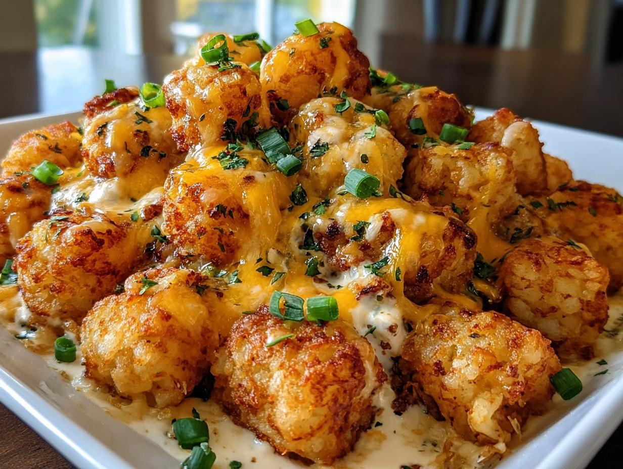 A hearty and flavorful dish made with chicken, ranch dressing, and tater tots.