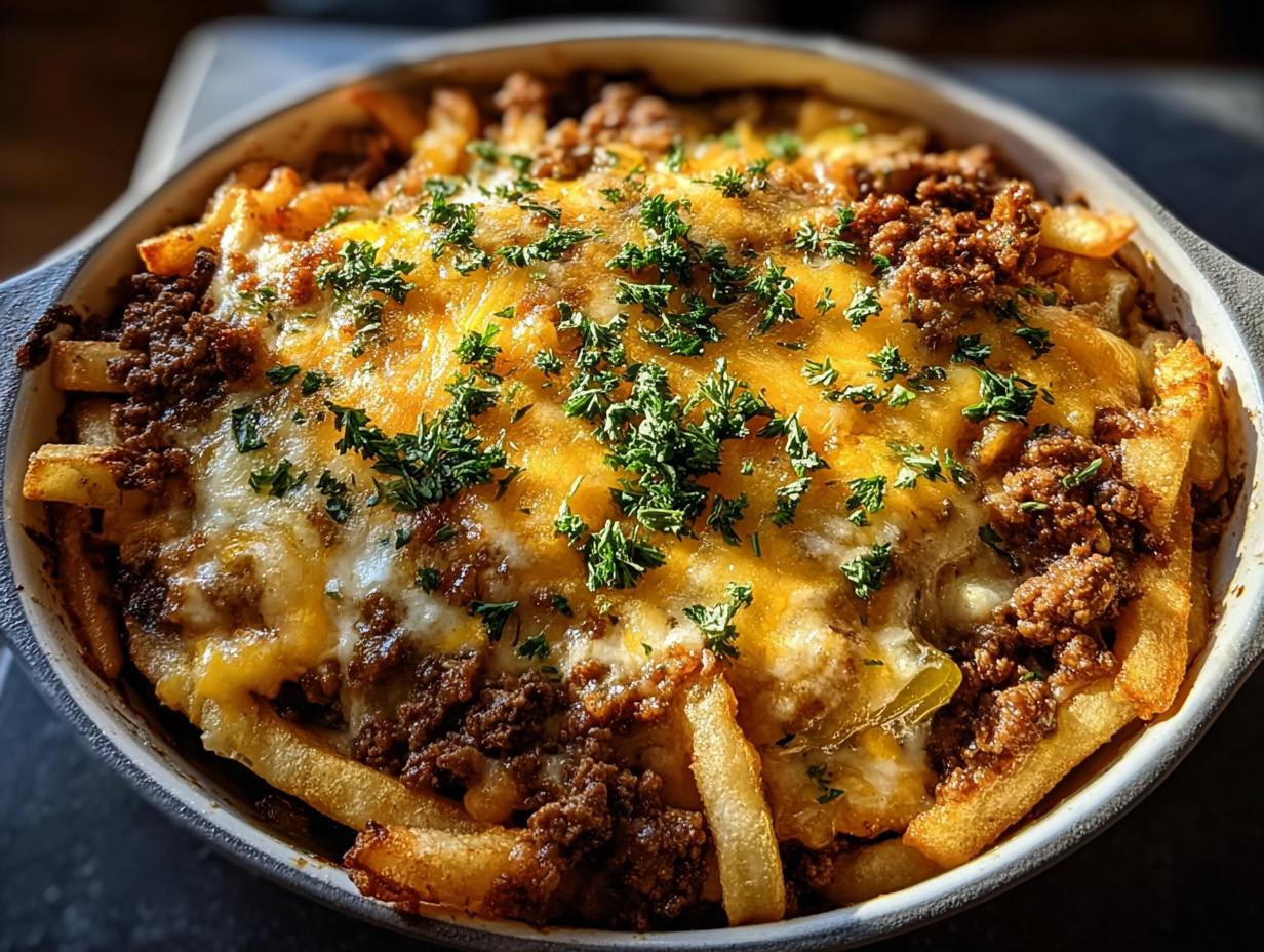 But the best part is how comforting and satisfying it is. Imagine biting into that crispy layer of French fries, followed by ground beef seasoned to perfection, all topped with ooey-gooey melted cheese. It’s like having a cheeseburger and fries all in one bite! You can customize it with your favorite toppings or dips, making it perfect for family dinners or game day gatherings. Trust me, this dish isn’t just food; it’s a hug on a plate! You’ll definitely want to keep this recipe in your back pocket for those days when only a heartwarming meal will do.