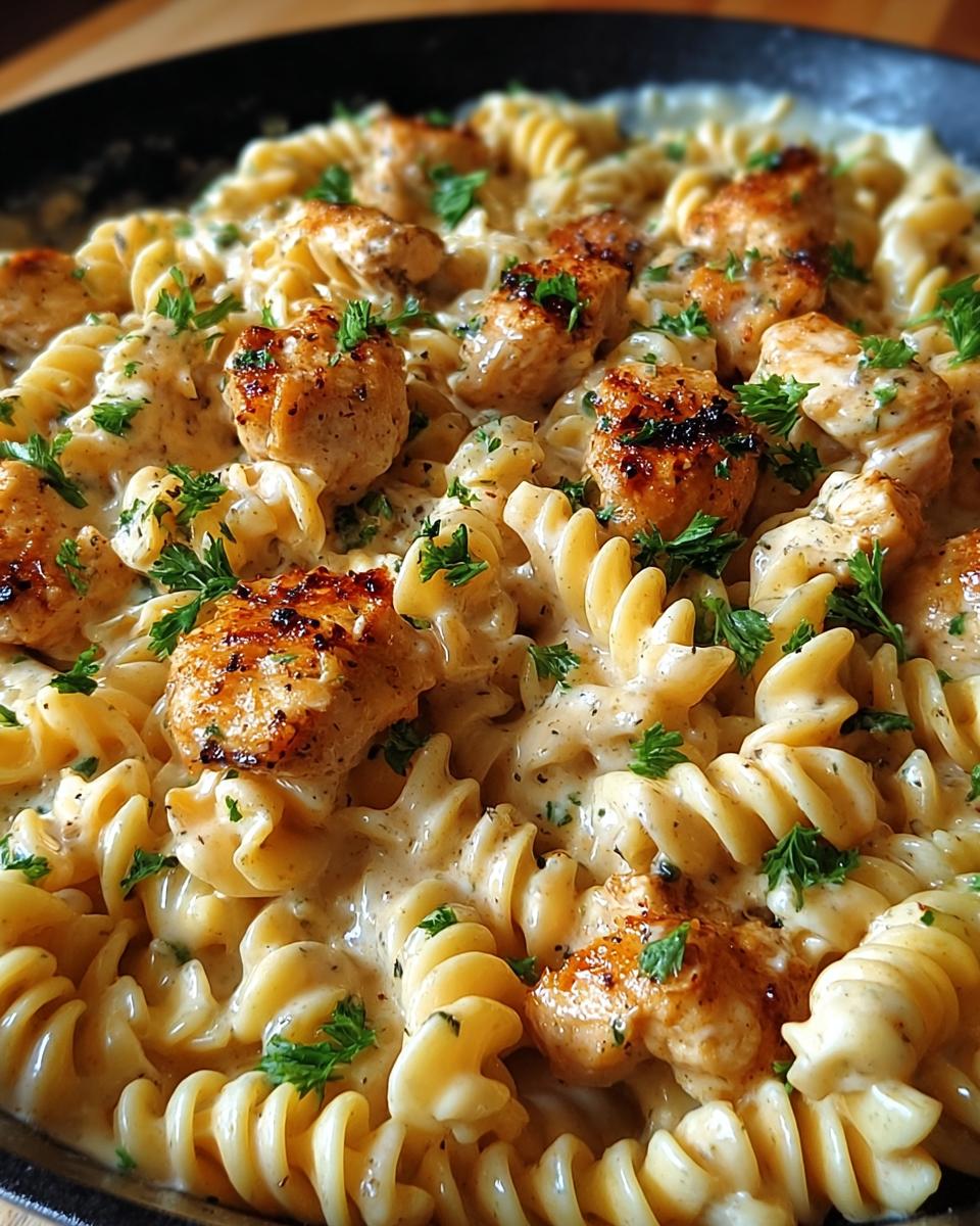One of the best things about the Cheesy Cajun Garlic Chicken Rotini Skillet is how adaptable it is! If you want to switch things up, try using shrimp or sausage instead of chicken for a different protein twist. For a veggie-packed version, toss in some bell peppers, spinach, or mushrooms during the cooking process. You can also experiment with different cheeses — gouda or pepper jack can add a fun flavor kick! If you’re looking for a lighter option, use zoodles (zucchini noodles) in place of pasta, or simply reduce the amount of cream for a lighter sauce. The possibilities are endless, so feel free to get creative!