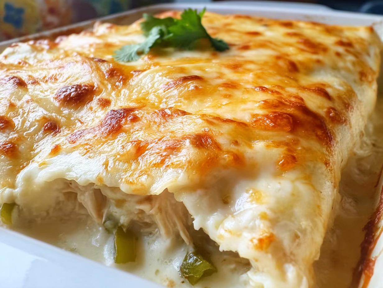 So there you have it! Cheesy Creamy White Chicken Enchiladas are not just a dish; they’re an experience that brings warmth and joy to any table. With layers of creamy sauce, tender chicken, and gooey cheese, you’re sure to impress every guest, or even just treat yourself to a delightful meal! They’re easy to make, adaptable to your taste, and perfect for any occasion, whether it’s a family dinner or a casual get-together with friends. I can’t wait for you to try making these at home! Trust me, once you do, they’ll quickly become a beloved staple in your recipe book. Happy cooking, and enjoy every cheesy bite!