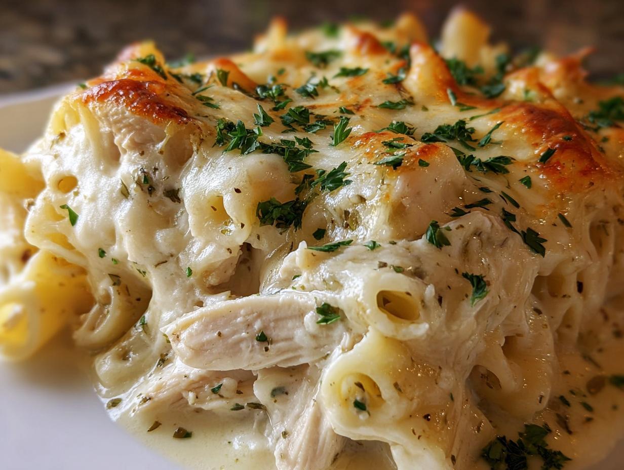 Keywords: Chicken Alfredo Bake, Pasta Bake, Comfort Food
