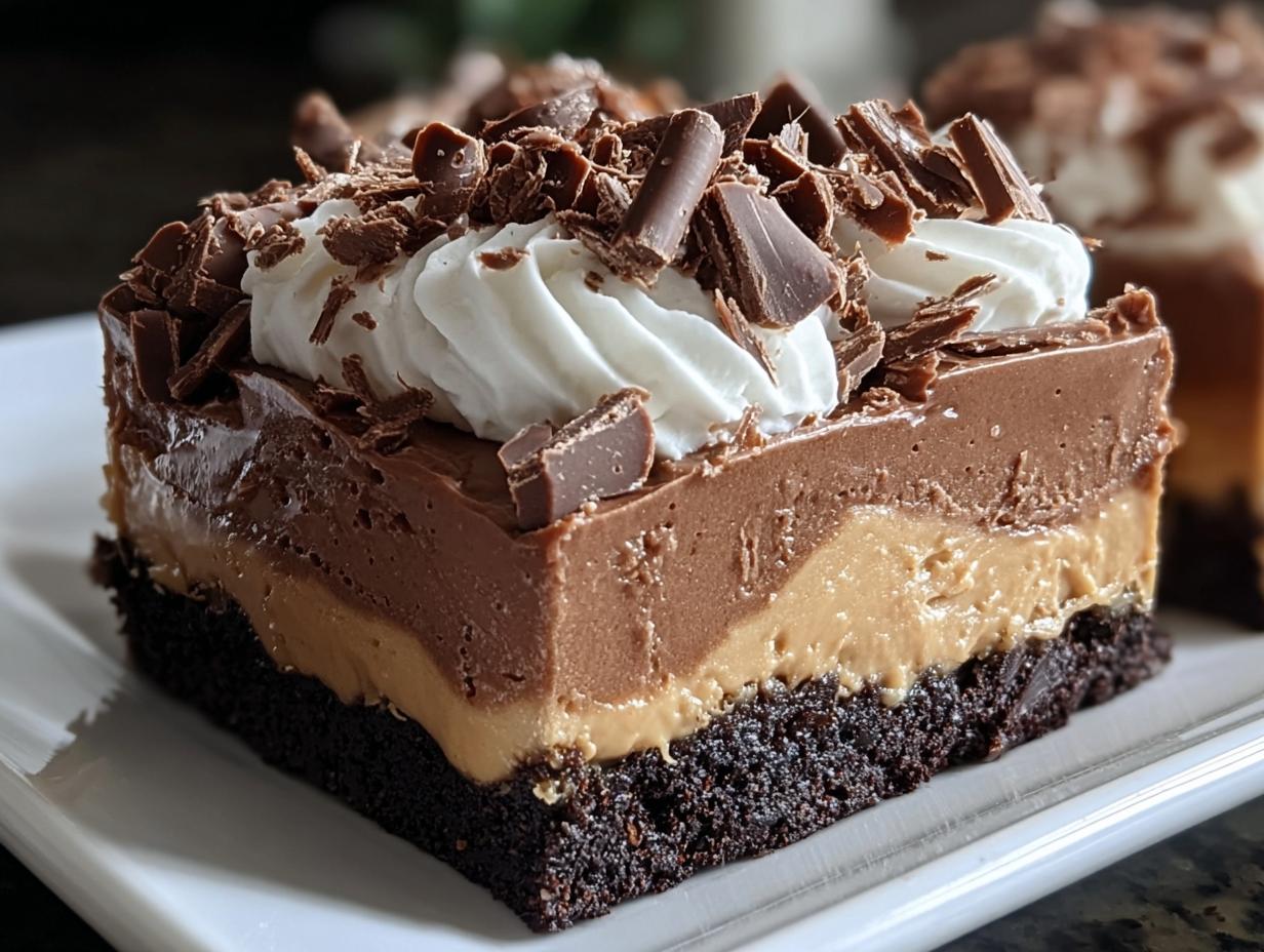Decadent bars with layers of chocolate and peanut butter flavors.