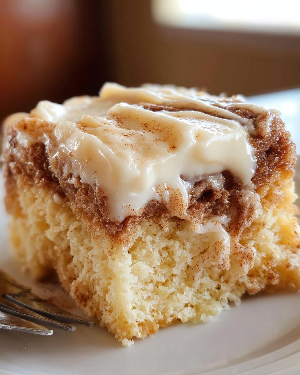 Here are a few tips to ensure your Cinnamon Roll Poke Cake turns out perfectly! First off, always use room temperature ingredients for the frosting — it makes mixing so much easier and results in a smoother, creamier texture. If you forget to take your cream cheese and butter out in advance, just pop them in the microwave for a few seconds to soften them up (but don’t melt them!).