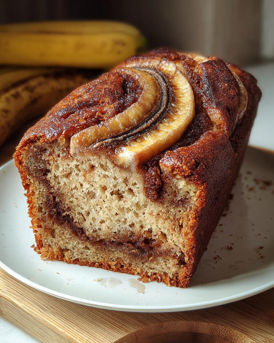 A moist and flavorful banana bread with a sweet cinnamon swirl, perfect for breakfast or dessert.