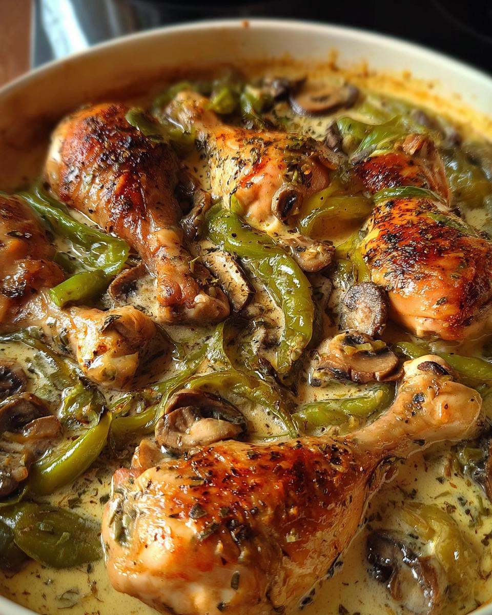 Alright, let’s get cooking! Follow these simple steps to create your Creamy Baked Chicken with Mushrooms and Green Peppers — I promise it’s easier than it looks!