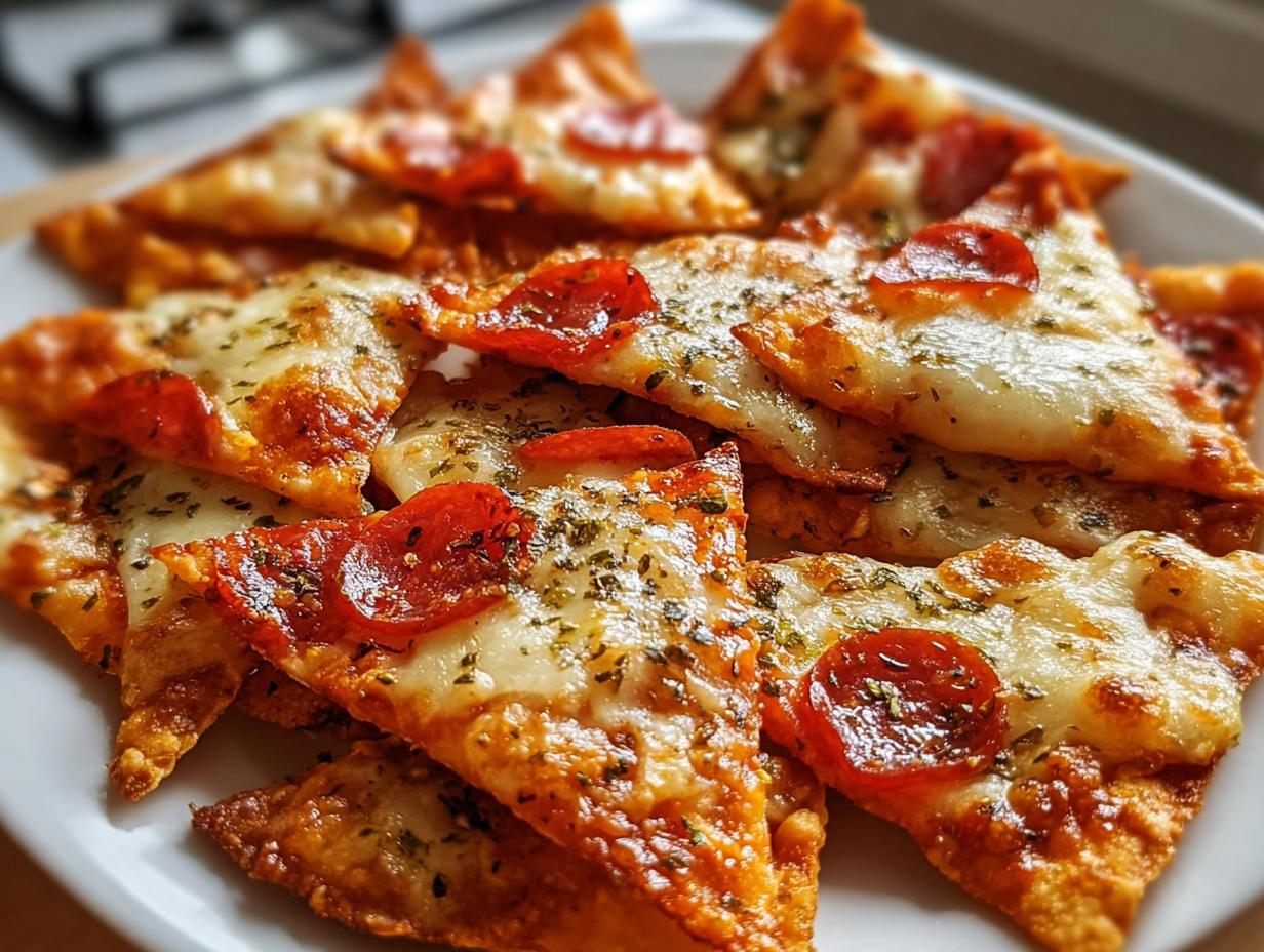 Crispy Pizza Chips are a quick and tasty snack that combines the flavors of pizza with the crunch of chips.