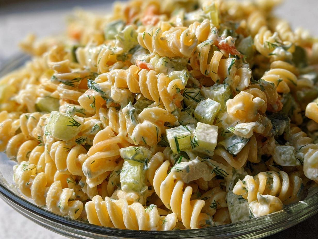 This Dill Pickle Pasta Salad is a refreshing and tangy dish perfect for picnics or barbecues.