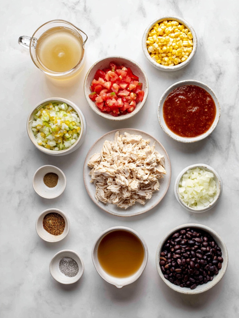 For serving: tortilla strips (I crush chips in a pinch), avocado slices, sour cream, and fresh cilantro – because presentation matters, even on lazy nights!