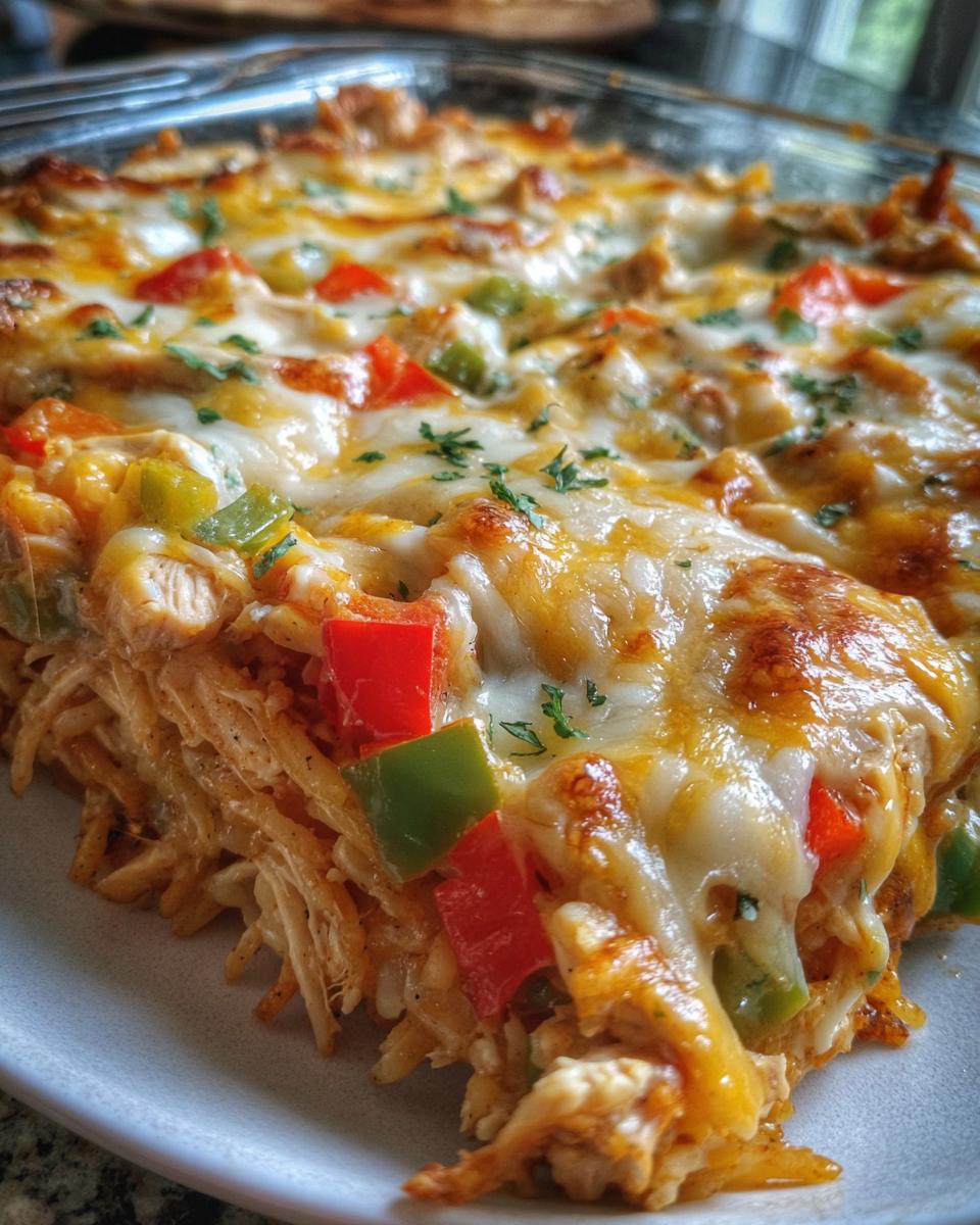 Fajita Chicken Casserole is a hearty and flavorful dish that combines chicken, rice, and spices for a satisfying meal.