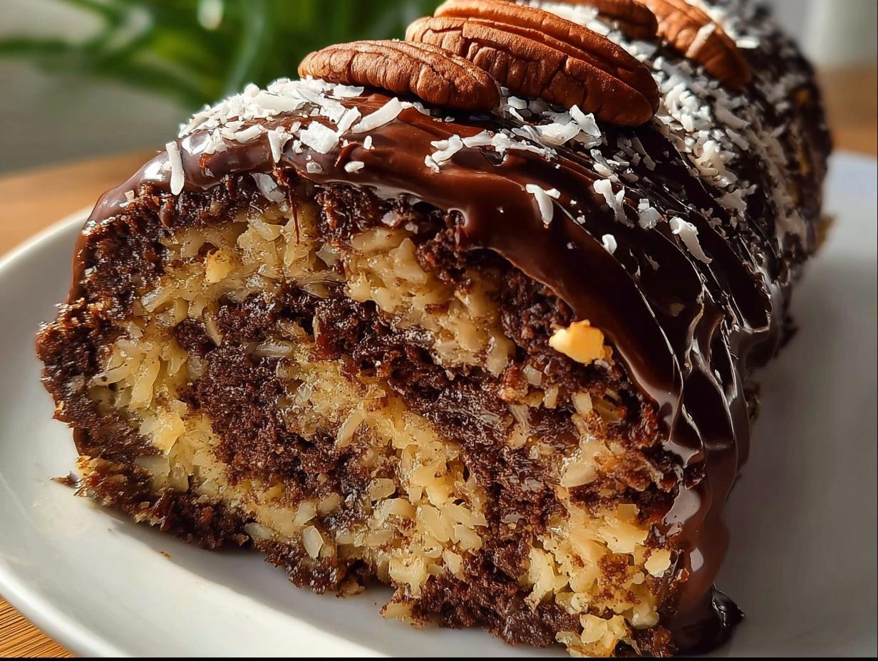 Keywords: German Chocolate Cake Roll, Chocolate Roll Cake, Coconut Pecan Cake