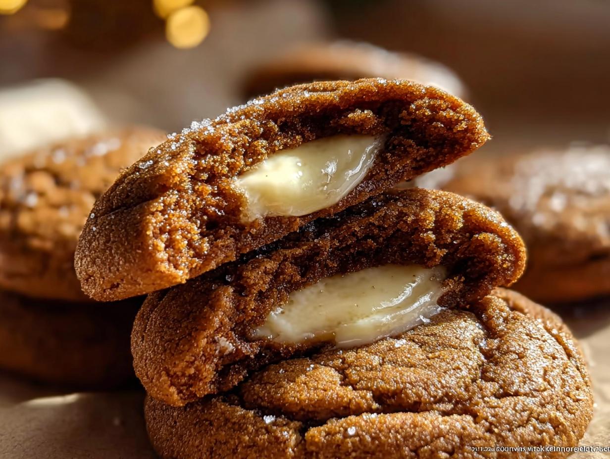 Delicious gingerbread cheesecake cookies with a creamy filling.