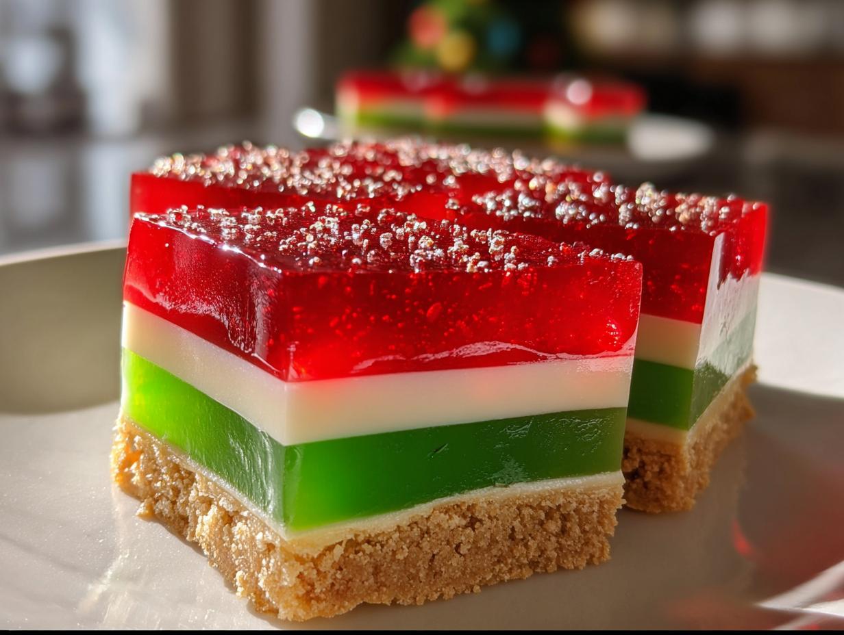 Keywords: Green & Red Christmas Jelly, Christmas dessert, festive jelly, holiday treat