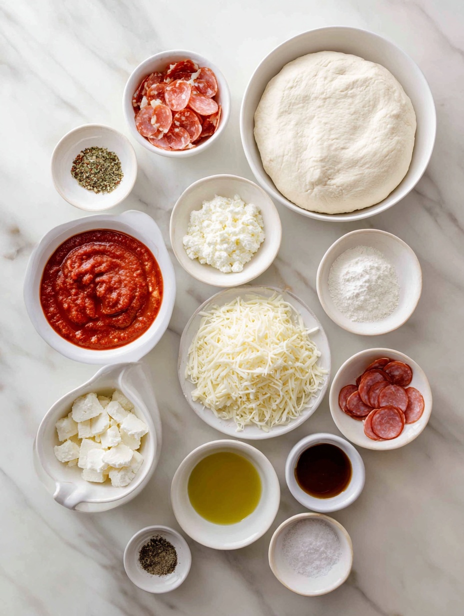 - Optional add-ins: mushrooms, bell peppers, or sausage