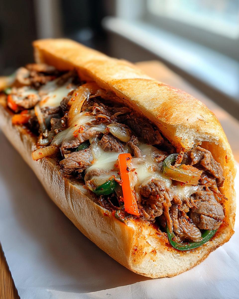 This dish is a love letter to the fusion of Korean cuisine and American classics. I remember the first time I had bulgogi at a Korean barbecue — the flavors were out of this world! And then there’s the cheesesteak, an iconic dish that holds a special place in my heart, especially during those late-night cravings. So, I thought, why not mix the two? That’s how this delightful recipe was born! The sweet and savory notes of the bulgogi harmonize perfectly with the spicy, tangy crunch of kimchi, all wrapped up in a warm hoagie roll. Trust me, once you try it, you’ll be hooked!