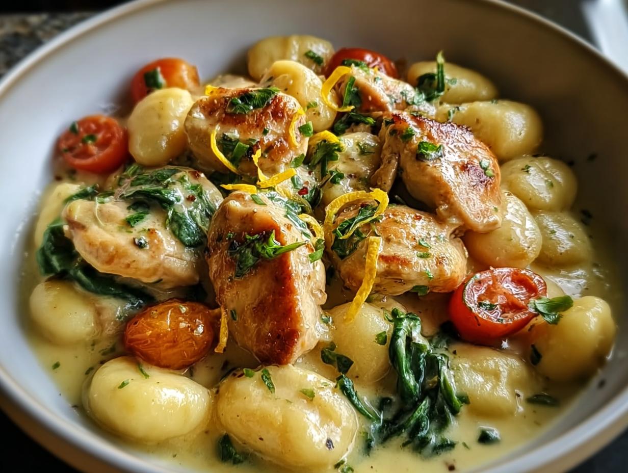 Let me tell you about my absolute favorite weeknight dish – Lemon Chicken Gnocchi! This recipe is one that I stumbled upon during a sunny spring afternoon, and I’ve been hooked ever since. The bright, zesty flavors of lemon combined with tender chicken and pillowy gnocchi create a dish that feels like a warm hug on a plate. It’s not just about the taste; it’s the whole experience of cooking it! The aroma that fills your kitchen is simply divine, and trust me, your family will be begging for seconds.