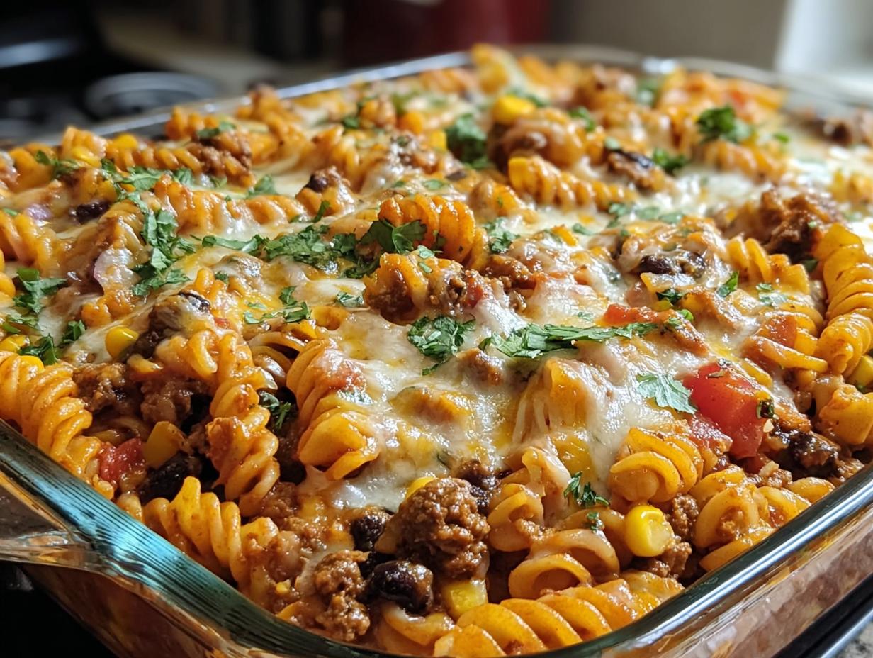There you have it—my Loaded Taco Pasta Bake recipe, which is not only delicious but also a breeze to make! With its hearty ingredients, cheesy goodness, and incredible taco flavors, this dish is sure to become a favorite in your home. It’s perfect for busy weeknights, family gatherings, or whenever you’re craving something comforting and satisfying. I can’t wait for you to try it! So roll up your sleeves, gather your ingredients, and get ready to enjoy a meal that will warm your heart and fill your belly. Happy cooking!