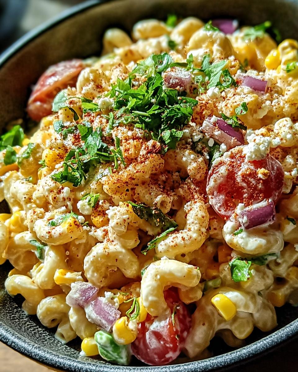 A refreshing and flavorful pasta salad inspired by Mexican street corn.