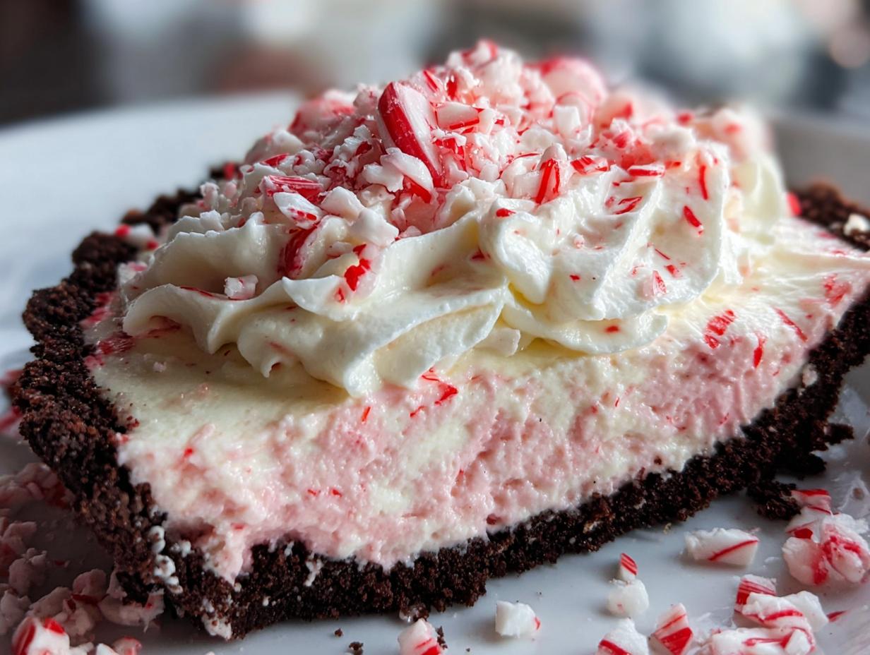 A delightful no-bake dessert featuring a creamy peppermint filling on a chocolate crust.