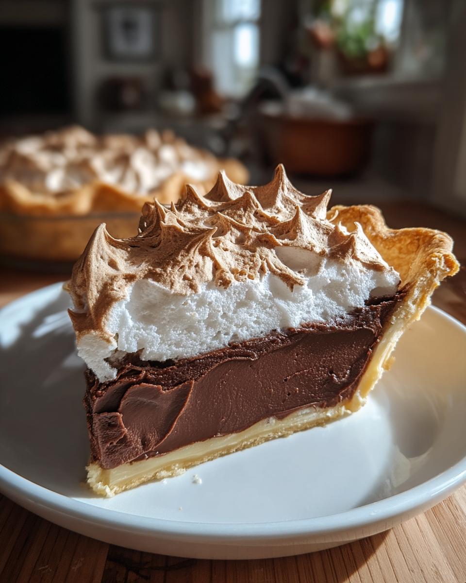 There you have it — your very own Old-Fashioned Chocolate Meringue Pie! This dessert is not just a treat; it’s a slice of nostalgia that brings back warm memories and fills your home with delightful aromas. The combination of rich chocolate filling and airy meringue is truly irresistible, and I guarantee it’ll become a favorite in your household. Baking this pie is a joyful experience, and sharing it with loved ones makes it even sweeter.