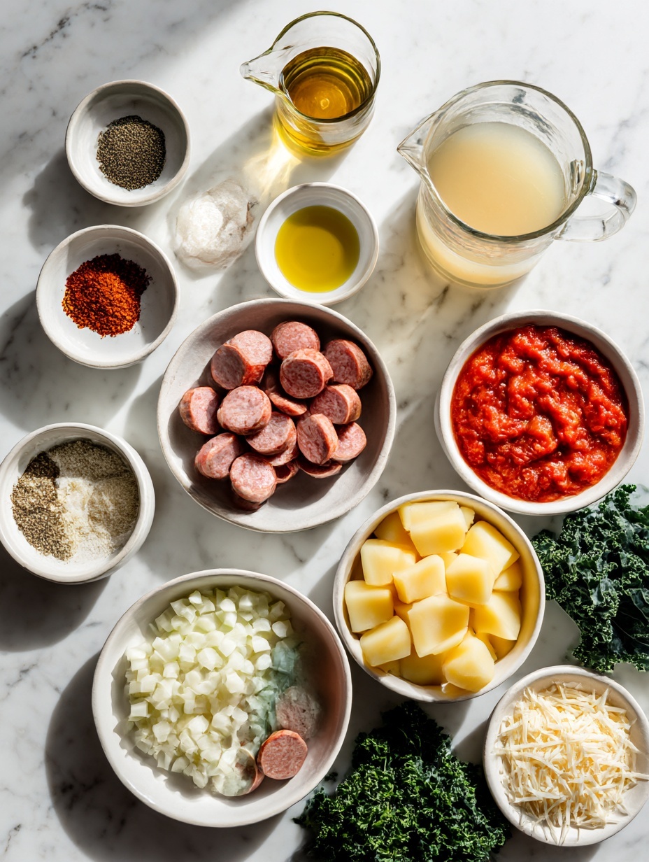 Now, let’s gather all the goodies you’ll need for this One-Pot Sausage, Kale, and Potato Soup. I promise, it’s a straightforward list!