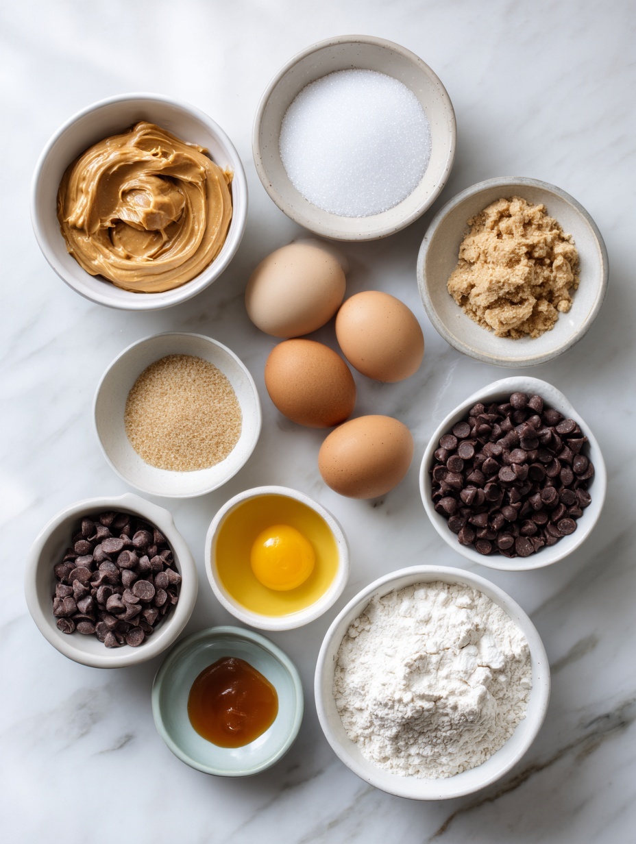 Ready to gather your ingredients? Here’s what you’ll need to make these mouthwatering Peanut Butter Chocolate Caramel Cookies. Each ingredient plays a crucial role in creating that perfect cookie experience, so let’s make sure we’re all set!