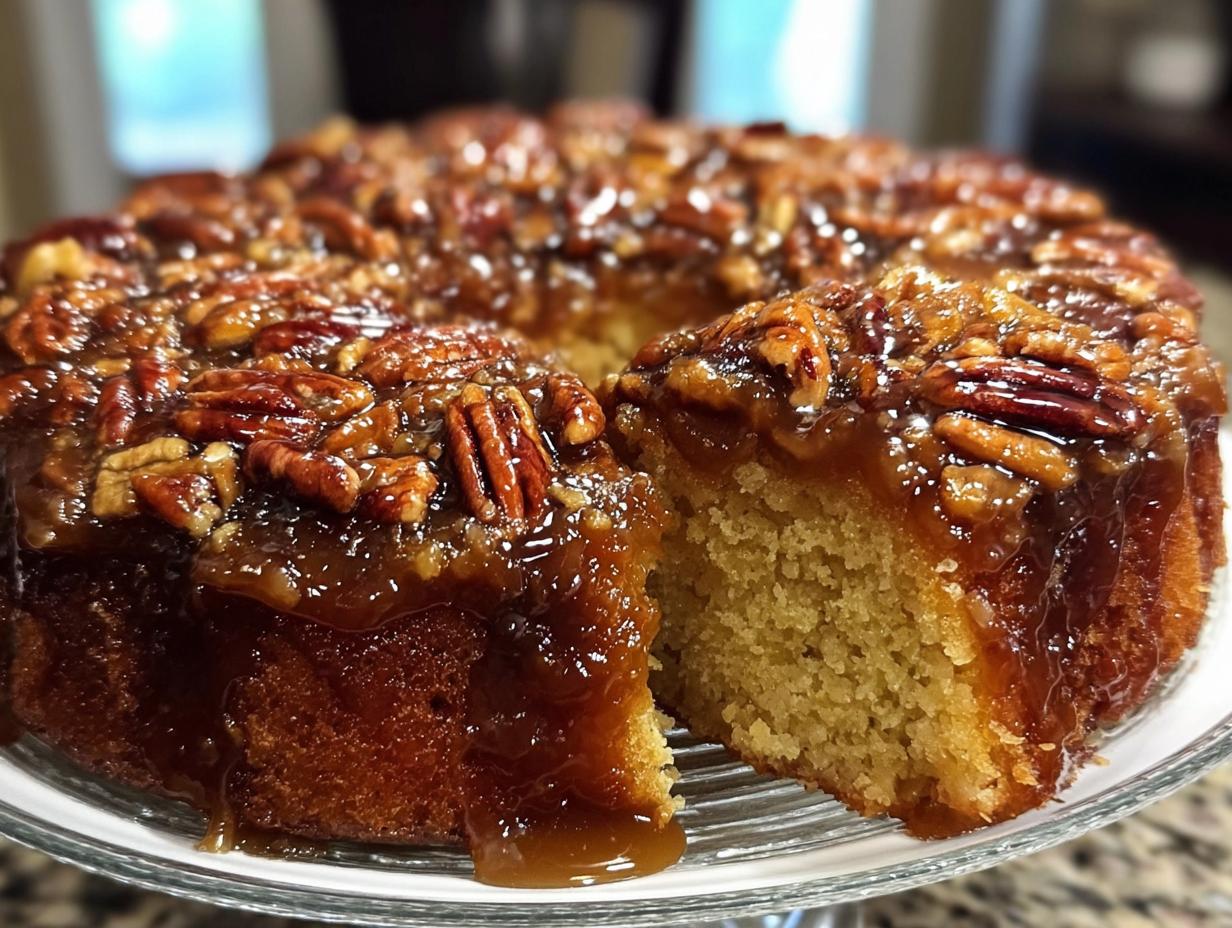 Not only does it taste amazing, but it also looks stunning when you flip it over. That golden, glistening pecan topping is bound to impress anyone who lays eyes on it. It’s like a centerpiece and dessert all rolled into one! This cake brings everyone together, sparking joy and nostalgia with every slice. Plus, it’s so easy to whip up, you’ll find yourself making it for every get-together, from casual brunches to holiday feasts. Trust me, once you make this cake, it’s going to become a family favorite that you’ll want to bake on repeat!