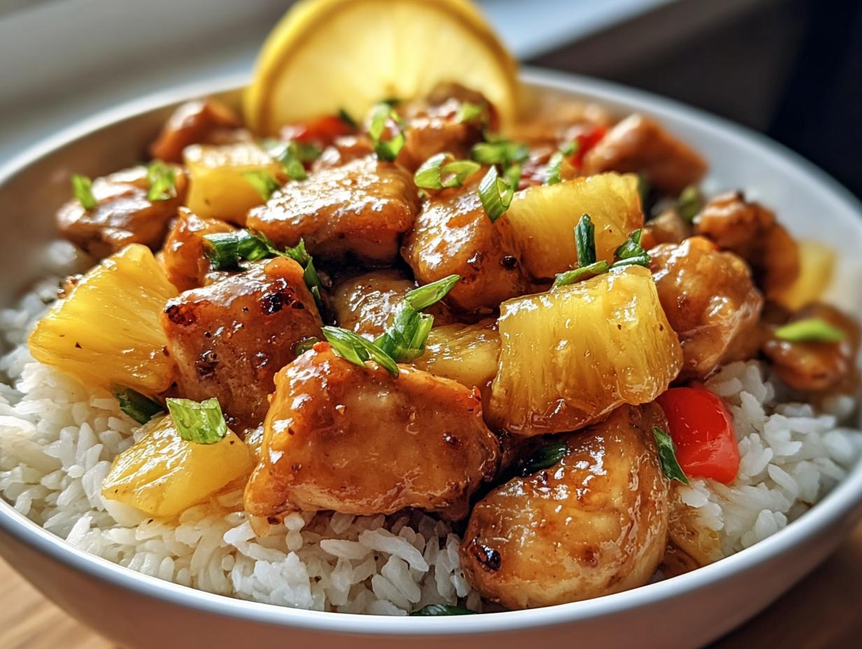 Pineapple Chicken and Rice is a flavorful dish combining tender chicken, fresh pineapple, and colorful vegetables.