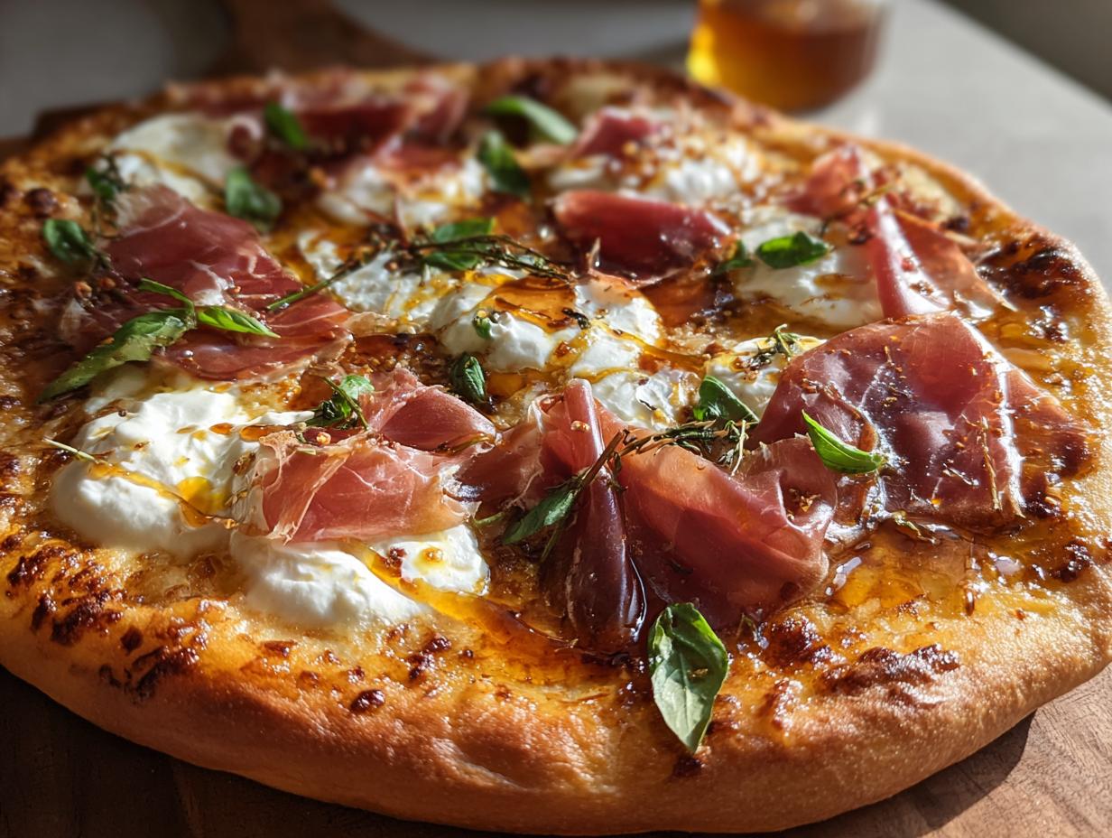 Oh, let me tell you about this Prosciutto and Honey Burrata Pizza! It’s one of those recipes that whisk you away to a cozy Italian trattoria, even if you’re just in your kitchen. The first time I made it, I was hosting a little gathering, and I wanted something that would impress my friends without spending all day in the kitchen. The moment I pulled that golden, bubbly pizza out of the oven and saw the creamy burrata melting away, I knew I’d struck gold. The combination of the savory prosciutto, creamy burrata, and a drizzle of honey creates a symphony of flavors that’s nothing short of magical. Seriously, it’s a flavor explosion!