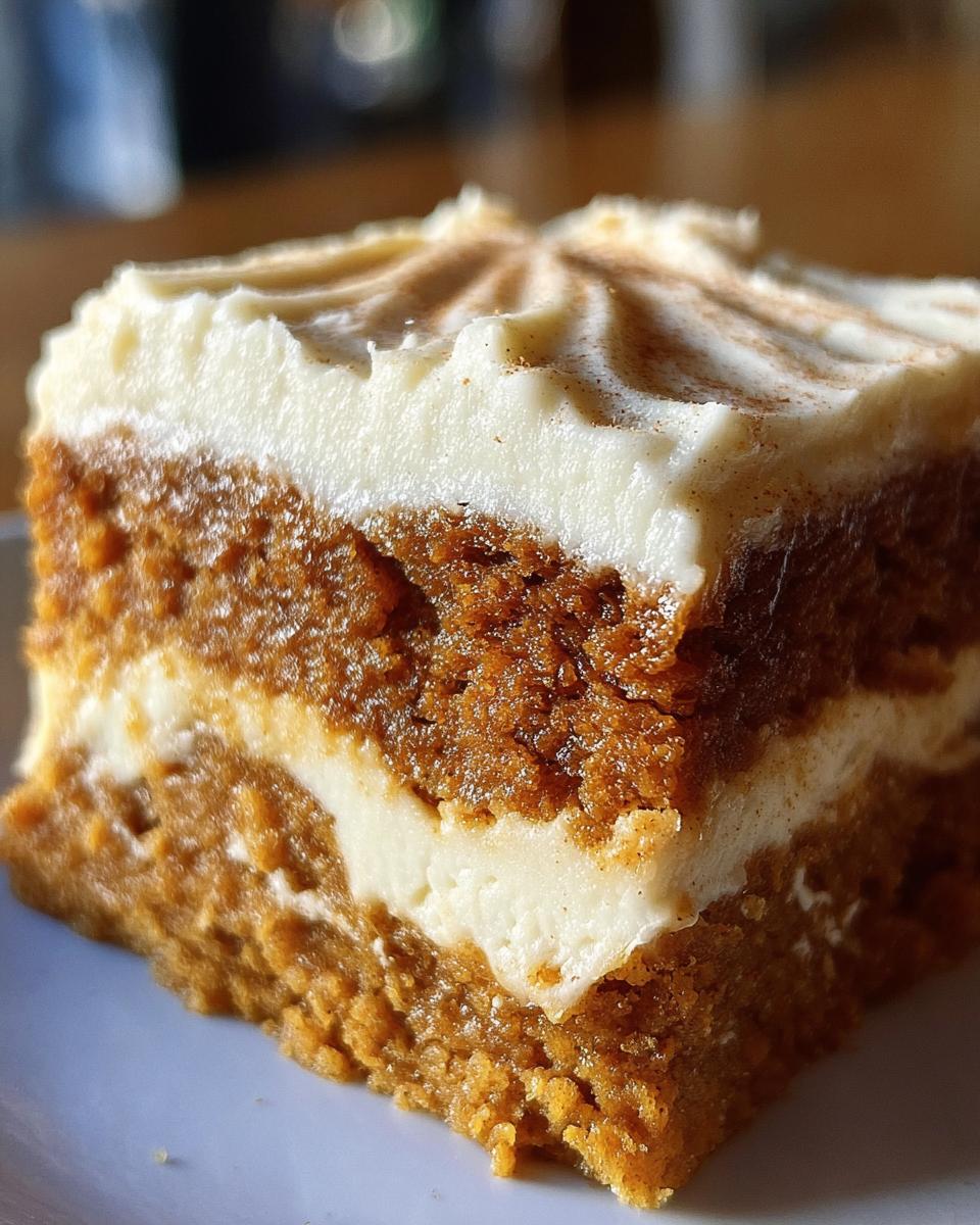So there you have it, my dear friends! This Pumpkin Spice Gooey Cake with Cream Cheese Frosting is not just a dessert; it’s a warm, comforting embrace that captures the essence of fall in every bite. I truly hope you give this recipe a try; it’s perfect for gatherings, cozy nights in, or just when you want to treat yourself to something special. Remember, the best part is sharing it with loved ones — I can’t tell you how many smiles this cake has brought to my table!