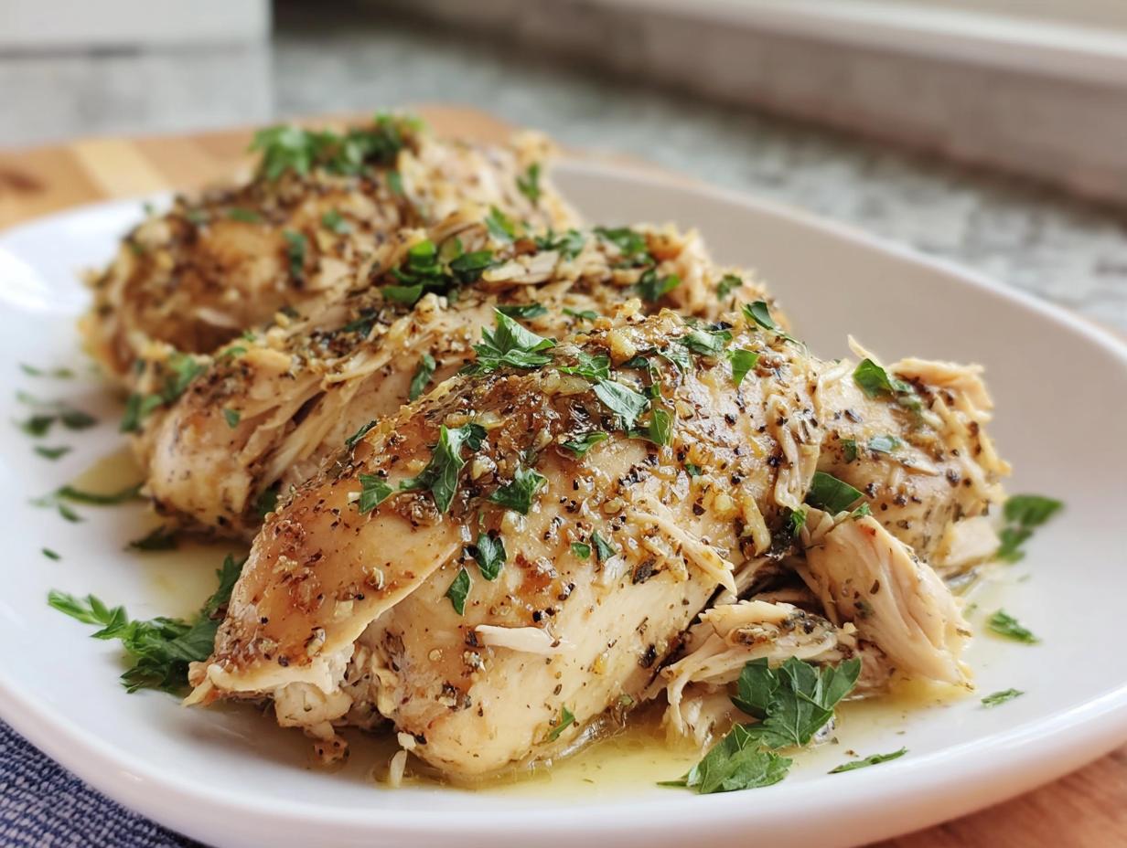 Slow Cooker Lemon Garlic Chicken is a tender and flavorful dish that combines zesty lemon and garlic.