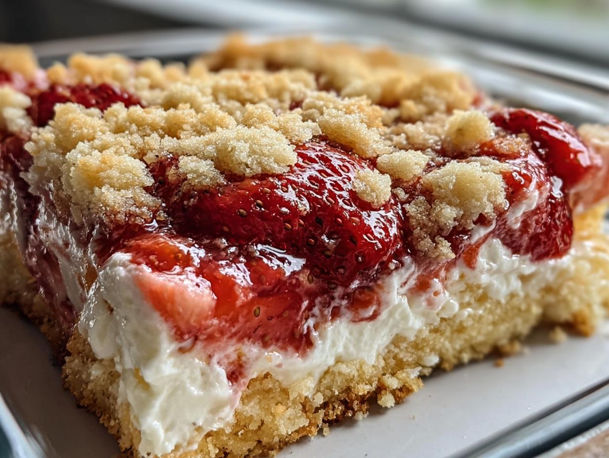 Now, grab your cream cheese mixture and dollop it over the strawberry filling. Use a spatula to gently spread it out, but don’t worry about making it perfect. It’ll all come together during baking! Then, take that box of strawberry cake mix and sprinkle it evenly over the cream cheese layer. This is where the magic happens. Finally, drizzle the melted butter all over the top, ensuring you cover as much of the cake mix as possible. It’ll help create that golden, crispy topping we all love!